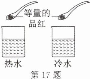 17. 按如图所示进行实验。当观察到热水中大面积变成红色时,冷水中只有品红周围变成红色。下列对该现象的微观解释合理的是 (