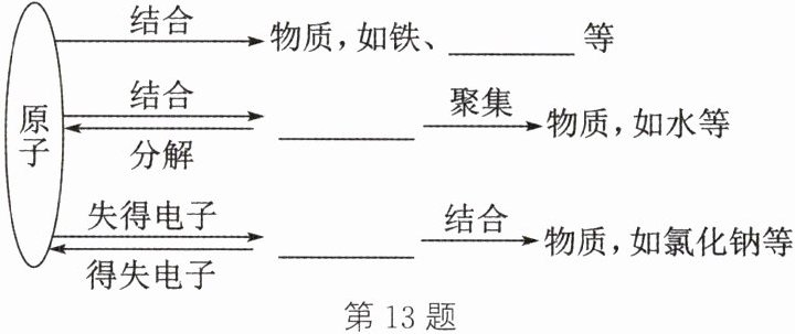 13. 如图是对构成物质微观粒子知识的整理与归纳,请回答下列问题。