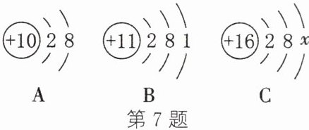 (填“阴”或“阳”)离子。(3)C中$x$的值是