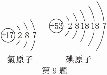 9. (2024·宿迁改编)氯原子、碘原子结构示意图如图所示。下列说法正确的是(