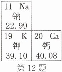 元素的相对原子质量最小。(3)钠、钾和钙在元素分类中都属于