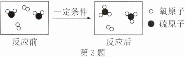 3. (2024·淮安期中)硫酸广泛用于工业生产,工业上生产硫酸会涉及多个反应,如图为其中一个反应的微观示意图。有关该反应的说法正确的是(
