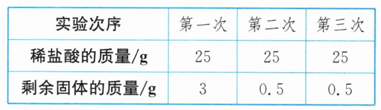 (1)5.0 (2)解:分析表中数据,25g稀盐酸能与2.5g碳酸钙恰好完全反应。设25g稀盐酸中HCl的质量为x。