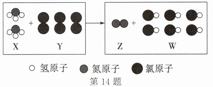 14. (2023·济宁改编)常温下,X和Y反应生成Z和W,反应前后分子变化的微观示意图如图所示。下列说法正确的是 (