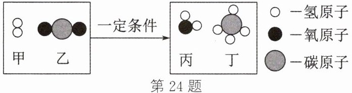 24. (2024·苏州工业园区星湾学校调研)载人航天器中处理$\mathrm{CO_2}的另一种方法是将\mathrm{CO_2}$与氢气反应,反应前后分子种类变化的微观示意图如图,下列说法正确的是 (