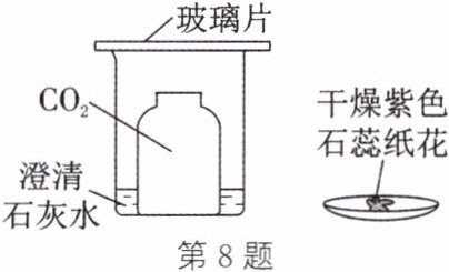 8. (创新考法)用如图所示装置和干燥紫色石蕊纸花进行实验,验证$CO_2$的性质。