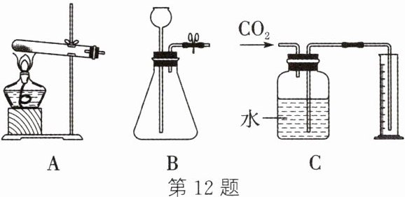 12. 化学是一门以实验为基础的科学。如图是实验室制取、收集、测量气体体积的常用装置。