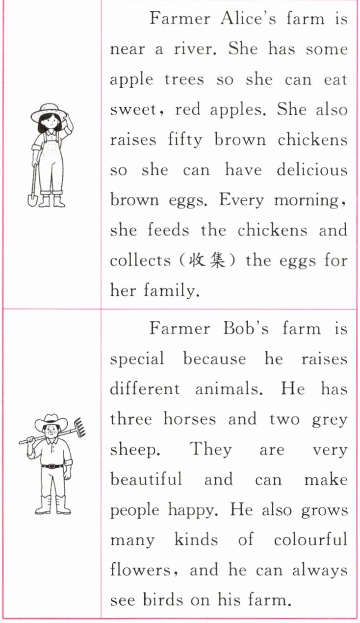 Farms are wonderful places where people grow plants and raise(养殖)animals. Here are three different farms!