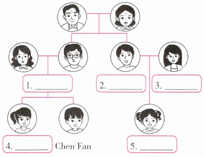 二、在方框中选择合适的单词填在横线上,完成陈帆的家谱图。
