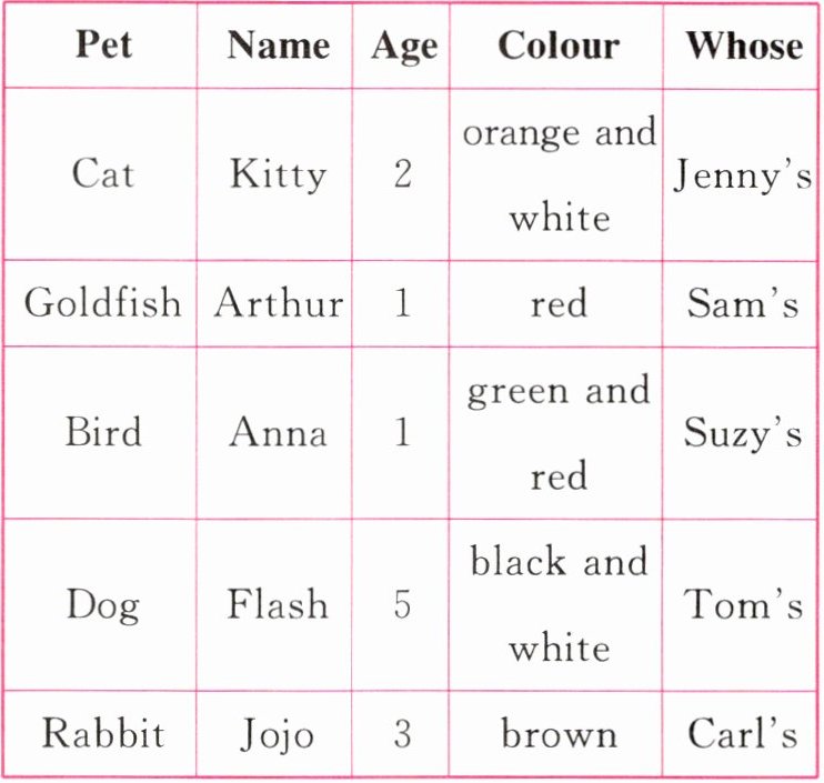 四、阅读表格,选择最佳答案。