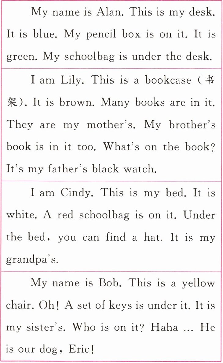 1. thing 2. tidy 3. needs 4. keys 5. welcome