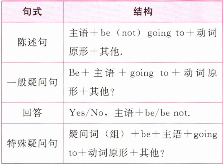 (1) “be going to + 动词原形”结构中,be 根据主语的不同变成相应的 am,is,are。