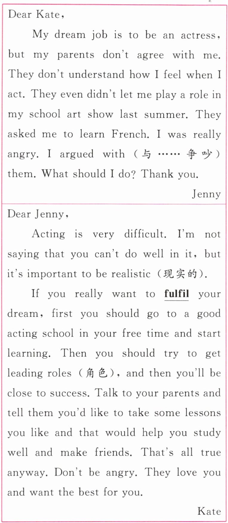 4. What does Kate think Jenny should do first if she wants to be an actress? (
