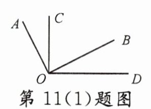 11. (1) 如图,已知∠AOB = ∠COD = 90°,∠BOC = 60°,则∠AOD 的度数等于