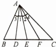 (1)AD 平分∠BAE;(2)AF 平分∠EAC;(3)AE 平分∠DAF;(4)AF 平分∠BAC;(5)AE 平分∠BAC。