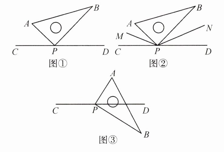 1. 如图,三角尺 $ ABP $ 的直角顶点 $ P $ 在直线 $ CD $ 上,点 $ A $,$ B $ 在直线 $ CD $ 的同侧.