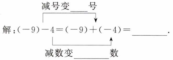 【点津】计算有理数的减法时,先根据有理数的减法法则,将减法转化成加法,再按加法的法则进行计算,转化时要注意两个改变:一是运算符号“$-$”变为“$+$”;二是减数变为它的相反数.