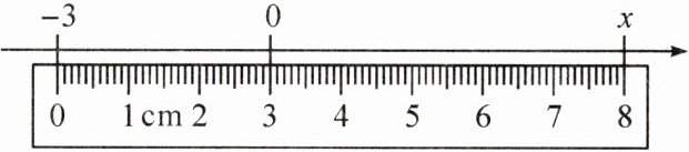6. 如图,将一刻度尺放在数轴上,刻度尺上“0 cm”“3 cm”“8 cm”分别对应数轴上的-3,0和x,则x的值为(
