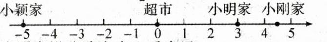 (1)以超市为原点,以向东的方向为正方向,用1个单位长度表示1千米,你能在数轴上表示出小刚、小明和小颖家的位置吗?