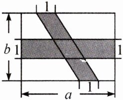16. 如图是一个边长为$a$,宽为$b$的长方形,两个阴影图形都是一对底边长为 1,且底边在长方形对边上的平行四边形.