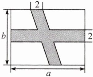 9. 如图是一个长为 $ a $,宽为 $ b $ 的长方形,两个涂色部分的图形都是底边长为 $ 2 $,且底边在长方形对边上的平行四边形。
