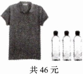 8. 根据图中给出的信息,求每件$T$恤衫和每瓶矿泉水的价格.设每件$T恤衫和每瓶矿泉水的价格分别为x元和y$元,(只列方程组)