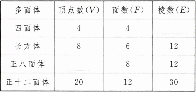 你发现顶点数(V)、面数(F)、棱数(E)之间存在的关系式是: