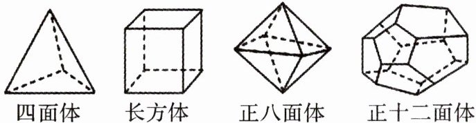 (3)由每个顶点处都有 3 条棱,得3V÷2=E=36,即 V=24,代入 E=V+F-2,得 F=14;设三角形的个数为x,得 3x+8(14-x)=24×3,得 x=8,即三角形的个数为 8.
