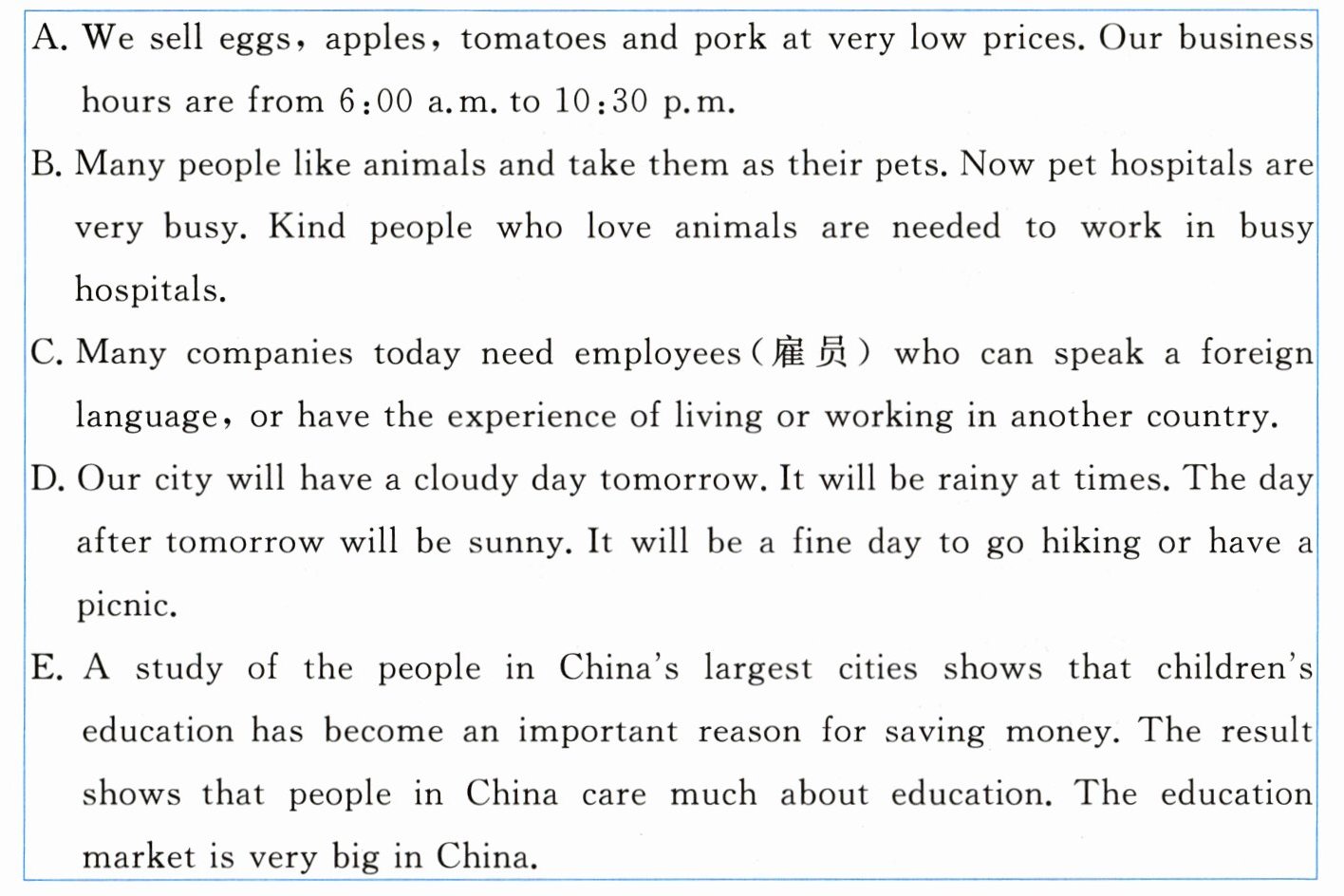 David is the boss of a big education company. He wants to get some information about education in China.3. ____