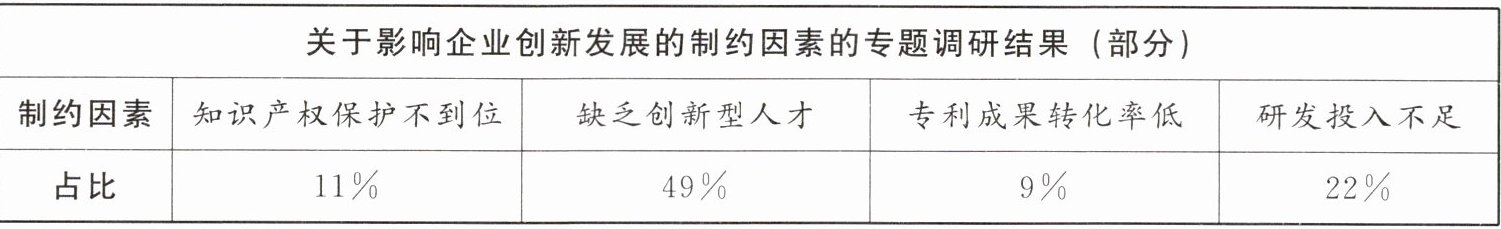 5. 某市政府部门对本市企业开展专题调研,根据以下统计数据分析,要提升本市企业的创新能力,重中之重应是(