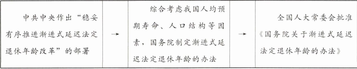 3. 自2025年1月1日起,我国正式推行渐进式延迟法定退休年龄政策。小粤同学对这一政策的出台过程进行了绘制与解读,其中解读正确的是(