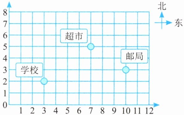 (1)根据我们学习的“八个方向”的知识,超市在学校的(