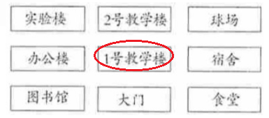 (2)用$◯$圈出你们班级所在的教学楼,用你喜欢的方法介绍它的位置。