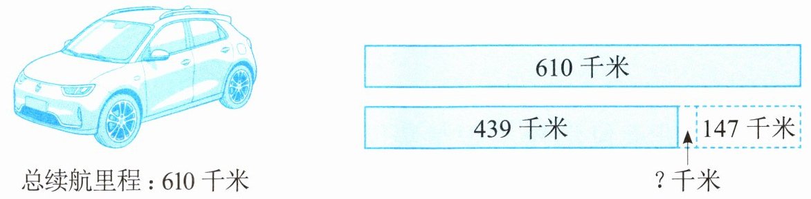 1. 奇思家的电动汽车总续航里程为 610 千米,假期奇思全家从深圳出发经深中通道去湛江游玩。汽车驶入深中通道时已消耗 147 千米续航里程,驶离深中通道后剩余续航里程为 439 千米。深中通道全长多少千米?