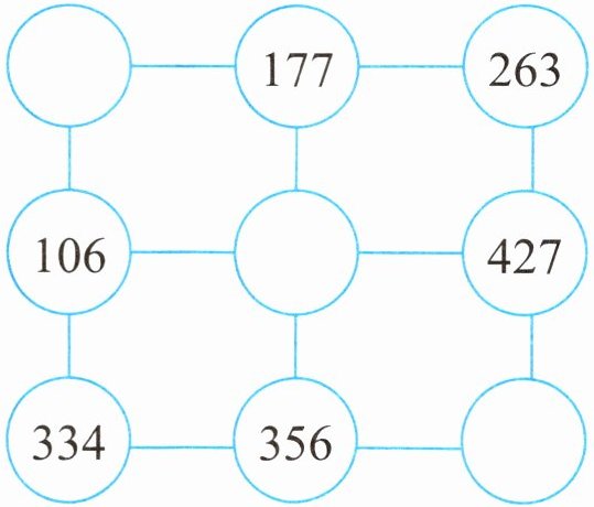 3. 在○中填上合适的数,使得每条线上三个数相加的和等于 998。