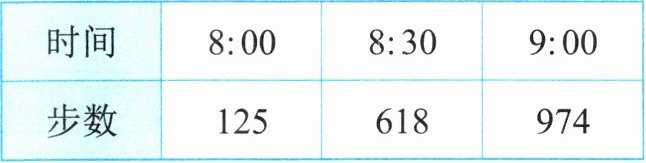 2. 下表是张叔叔的手机计步软件在三个时间点时显示的步数,张叔叔从$8:00到8:30$一共走了(