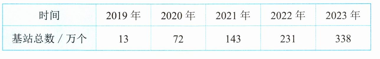 1. $2019$年,我国正式进入$5G$时代。下表是$2019年底至2023年底我国5G$基站总数的情况。哪一年$5G$基站数量增长得最快?