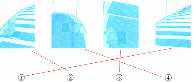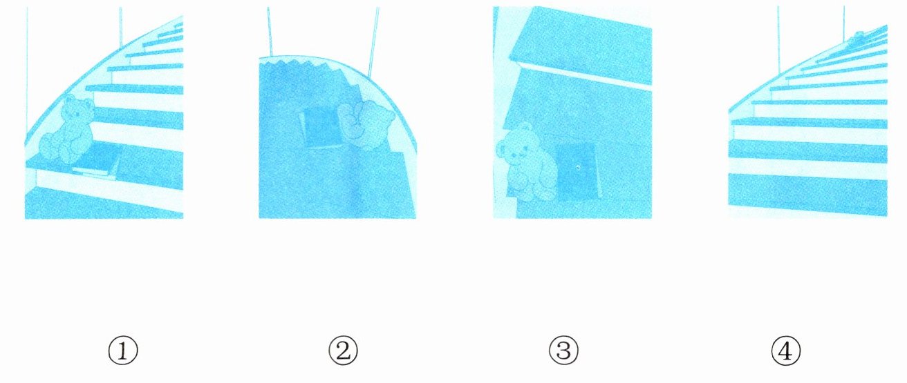 下面四幅图分别是淘气站在哪一层楼看到的?在括号里写一写。