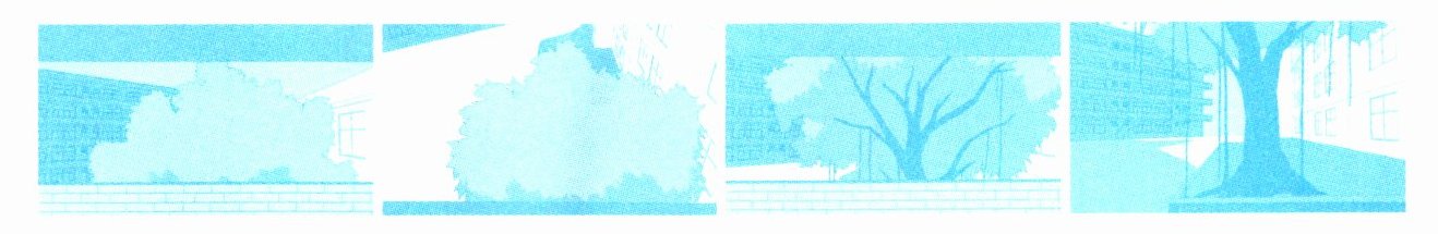 榕树树冠庞大、枝叶茂盛,是适应性很强的树种。学校有一棵百年榕树,淘气分别站在一楼、二楼、三楼、顶楼观察它。
