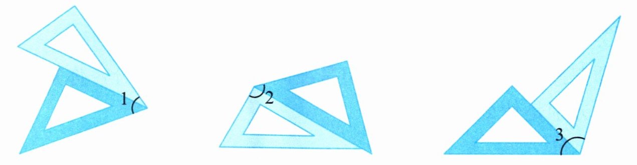 借助一套三角板,按照下图拼一拼,比一比,再将下图按照角从大到小的顺序排列。(选填“$\angle 1$”“$\angle 2$”“$\angle 3$”)