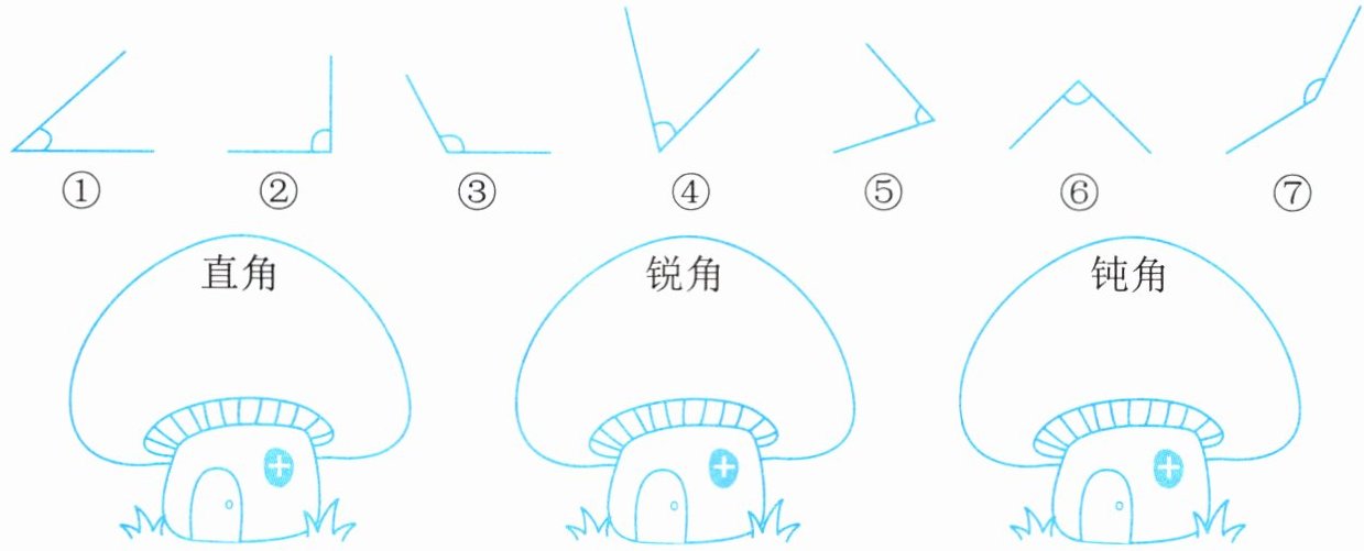 老师在黑板上画了三个角,但是被同学擦掉了一部分,你知道这三个角分别是什么角吗?