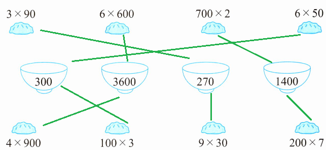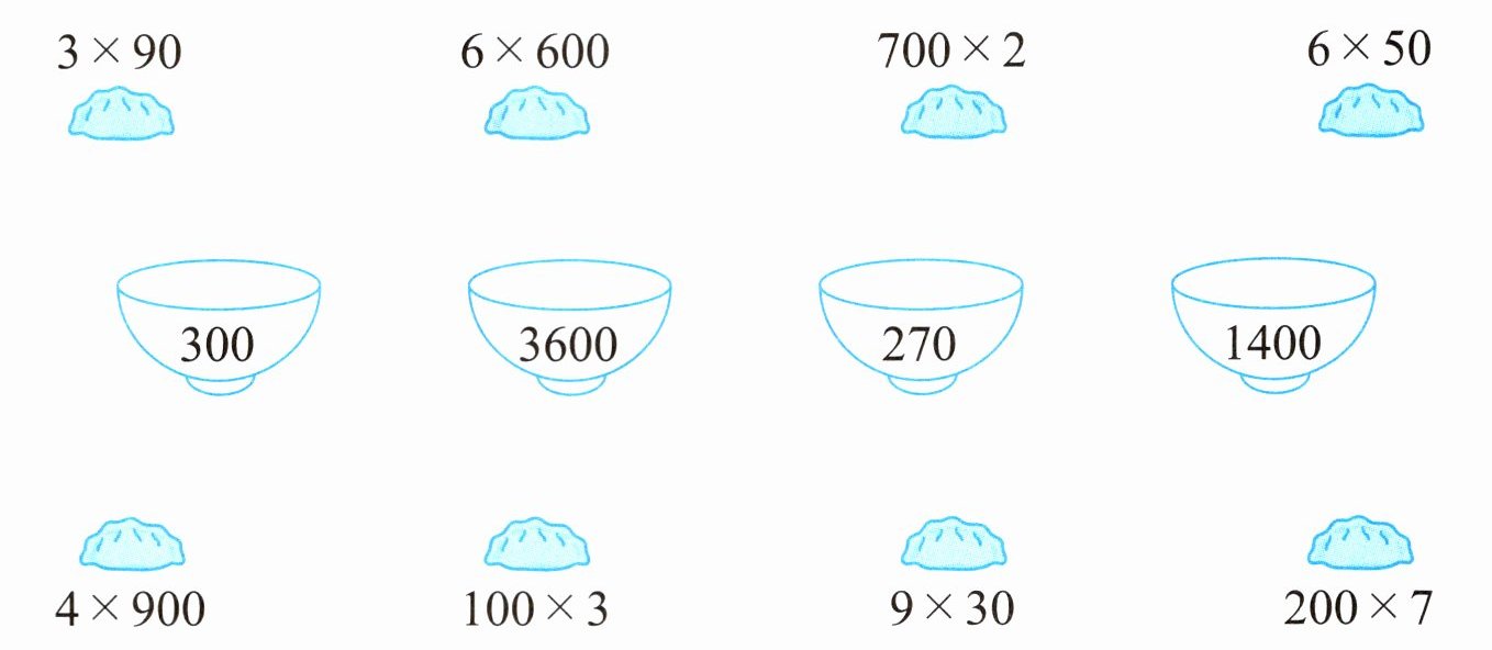 1. 连一连。下面的饺子分别应该放进哪个碗中?