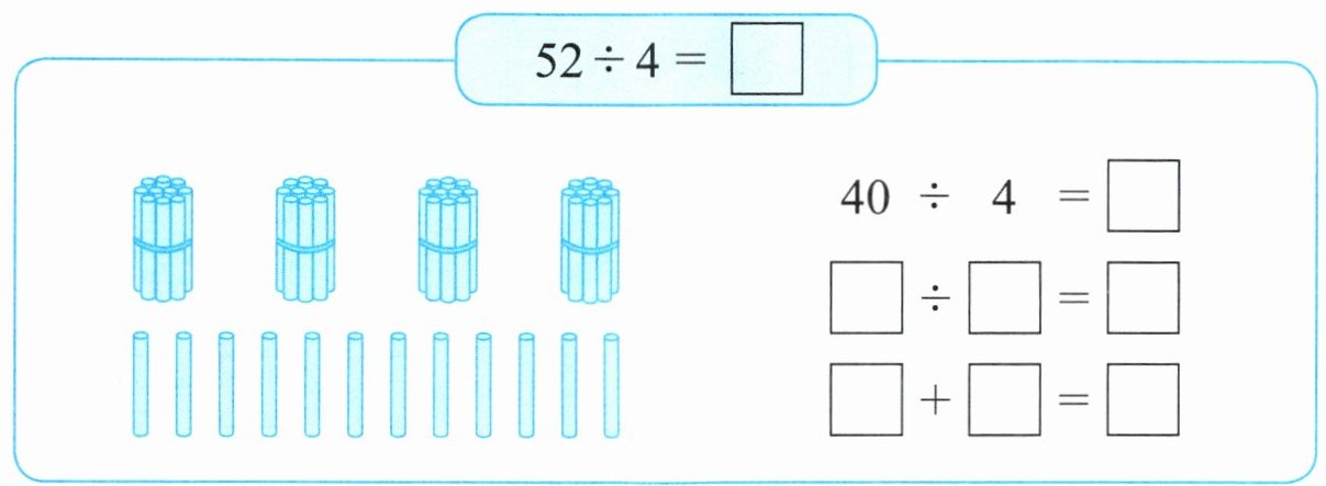 $52÷4 = 13$;$40÷4 = 10$;$12÷4 = 3$;$10 + 3 = 13$