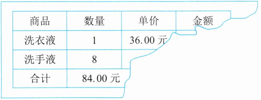 下面是一张破损的购物票据,你能算出洗手液的单价吗?