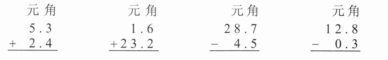 $\begin{array}{r}5.&3 \\+2.&4 \\ \hline 7.&7 \end{array}$