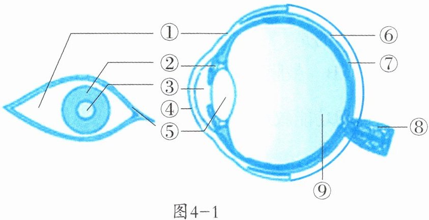 2. 图4 - 1为眼的正面和侧面示意图,请据图回答问题。
