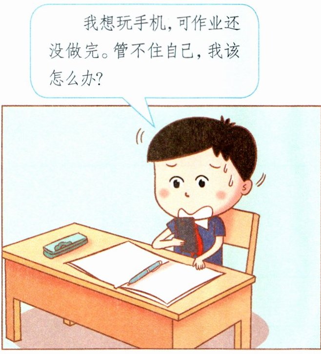 讨论结果:可以先制定一个计划,比如设定一个时间限制,先完成作业,再玩一会儿手机作为奖励;或者把手机交给父母保管,等作业完成后再拿回来,这样能帮助自己集中注意力完成作业。