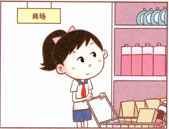 我们的身份在不同的场合会发生变化。请填写图中小女孩在不同场合中的身份。