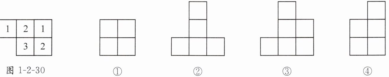 4. 图1-2-30是一个由多个大小相同的小立方块搭成的几何体从上面看到的形状图,图中所标数字为该位置小立方块的个数,则这个几何体从正面看到的形状图是