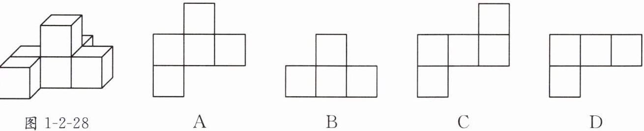 2. 图1-2-28是由6个相同的小立方块搭成的几何体,从上面看这个几何体的形状图是(